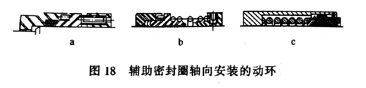 靠輔助密封圈軸向裝置的動環(圖18),靠彈簧力壓緊密封圈來實現密封。彈簧力可視為不變化,密封可靠、使用壽命長、安裝較為便利,從而得到廣泛應用。