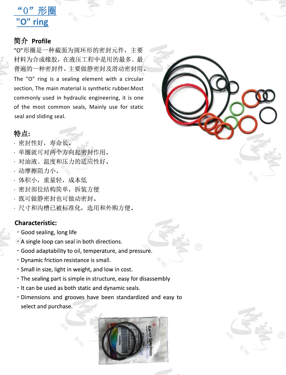 “O”形圈(quan)是(shi)(shi)一種截面為圓環(huan)形的(de)密封(feng)元件(jian)(jian),主要(yao)(yao)材料為合(he)成橡膠,在液壓工程中(zhong)是(shi)(shi)用(yong)的(de)最(zui)多、最(zui)普遍的(de)一種密封(feng)件(jian)(jian),主要(yao)(yao)做靜密封(feng)及(ji)滑動密封(feng)用(yong)。
